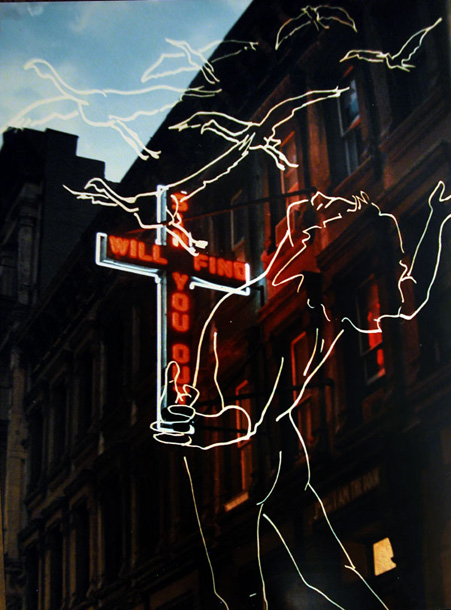 This is a series of color photographs produced in NYC in 1984 as an homage to the emotional tenor of the Orson Welles’ book 1984 of a totalitarian future society. Fear haunts these images as strange meetings occur in the mists and dark shadows of the NYC streets.