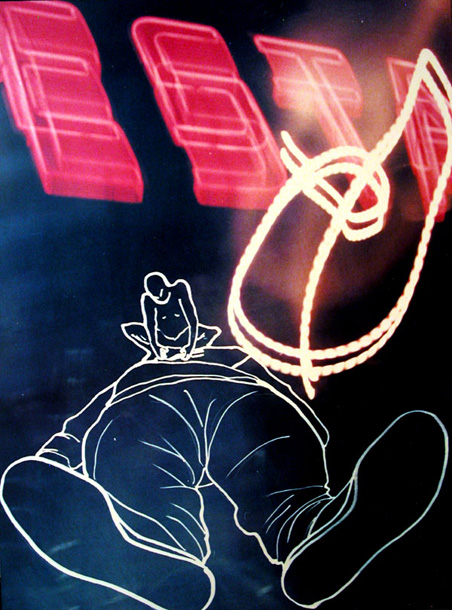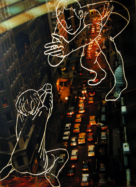 A series of photographs taken on steamy nights in NYC with composite drawings of inner street dwellers