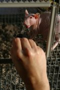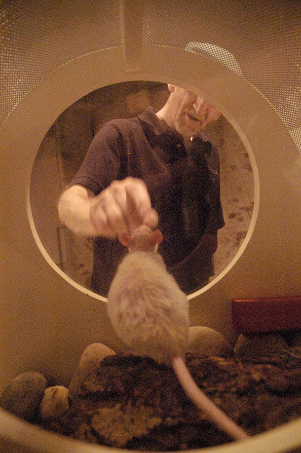 In Embracing Animal, three transgenic lab rats, model HLA-B27, were given special housing and made available to the public’s view. Transgenic rats are microinjected with human DNA, allowing them to share our human genes. Transgenic rats are referred to as powerful ‘tools’ for the study of human health as they are, in many ways, physiologically close to humans. High was particularly interested in the rats that were used in autoimmune disease research for illnesses close to her own. But she treated her rats holistically, and as her sisters.