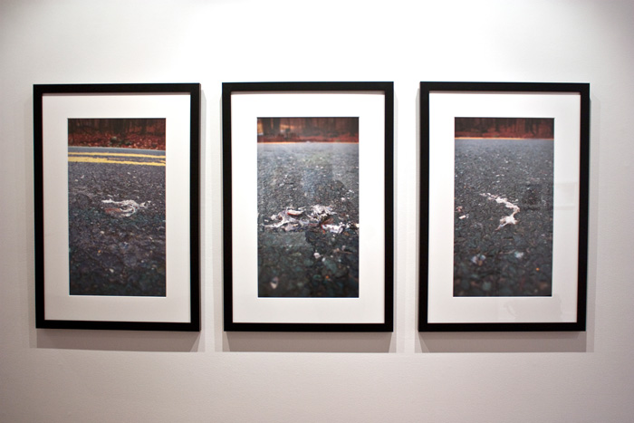 Intimate photographs of the landscape of road kill. (2’x3’)