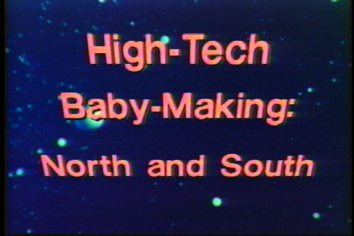 This work uses excerpts from films by feminists around the world to look at the state of reproductive technologies for women, including both conceptive and contraceptive technologies. The status of first world and third world reproductive politics is also reflected in these excerpts, such as over-population issues in developing countries, and infertility problems in developing ones. The program includes media pieces from women’s groups in India, Brazil, Mexico, France and the United States. Additionally, interviews with sociologists, scientists, influential doctors, cultural critics, patients and women who have received various reproductive treatments are included.